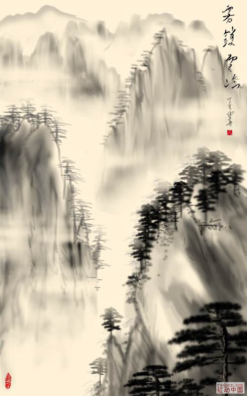 绘画之前,我们需要先设置好画笔属性,调出类似水墨感觉的笔刷。然后就找一些水墨画来参考一下,按照自己...
