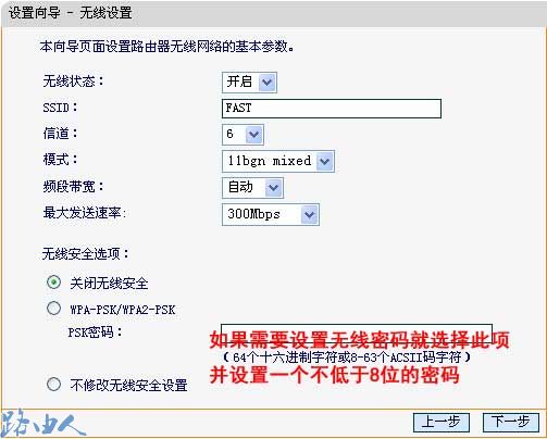 (5)设置完成后,单击下一步,您将看到如下图所示的基本无线网络参数设置页面。