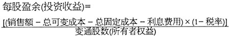 筹资无差别点,是指两个不同筹资方案每股收益相同的息税前利润,即在这一息税前利润水平上,不管采取债务性筹资还是权益性筹资都会得到相同的每股收益额。如果企业实际的息税前利润超过了筹资无差别点,就可以加大负债比重,以便获得更高的每股收益,反之,当实际的息税前利润低于这一点时,采用发行普通股融资,降低负债比率,可减少固定的利息支出,增加每股净收益。