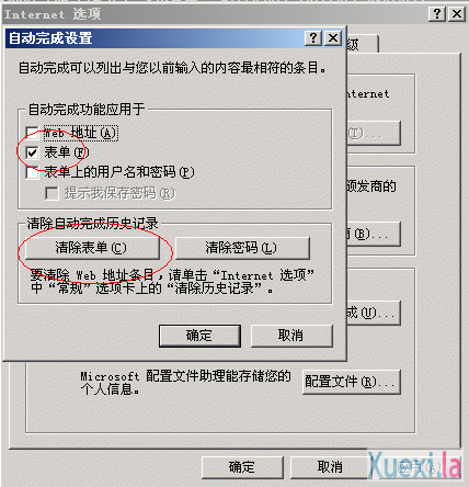 IE自动弹出一个新窗口——“自动完成设置”对话框。点击“清除表单”,此时会再弹出一个小对话框,内容为:“是否清除以前保存的表单条目(密码除外)?”选择“确定”。关闭此对话框后,依次点击“确定”关闭其它Internet对话框。重启IE,再查看搜索栏,此时关键字记录已全部被删除。