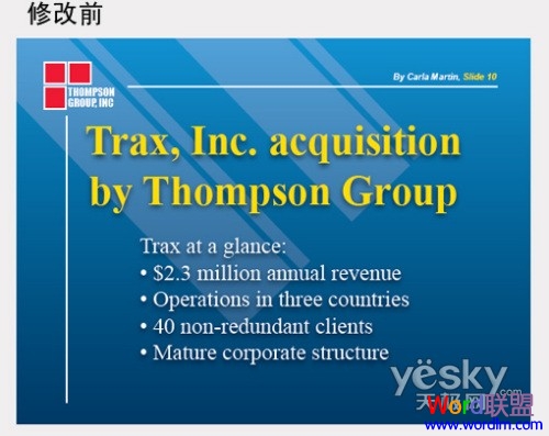 太多东西了!这张幻灯片基本上就象你所写的一个便条,但在视觉上,它毫无作用。