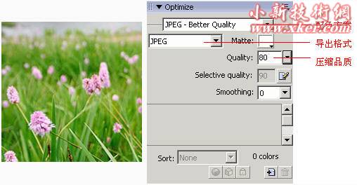 Fireworks 的优化面板是关键,比较简单的