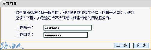 (4)在如下图的界面中输入ISP提供的宽带上网的用户名和密码