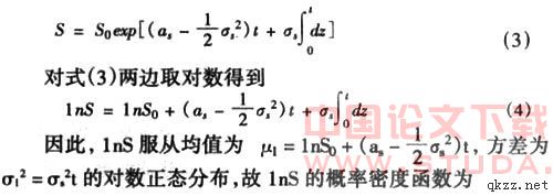 其中as表示租赁价格的瞬时漂移率,σs表示单位时间内租赁价格的波动率,dz为维纳过程增量,对式(2)进行积分,得到