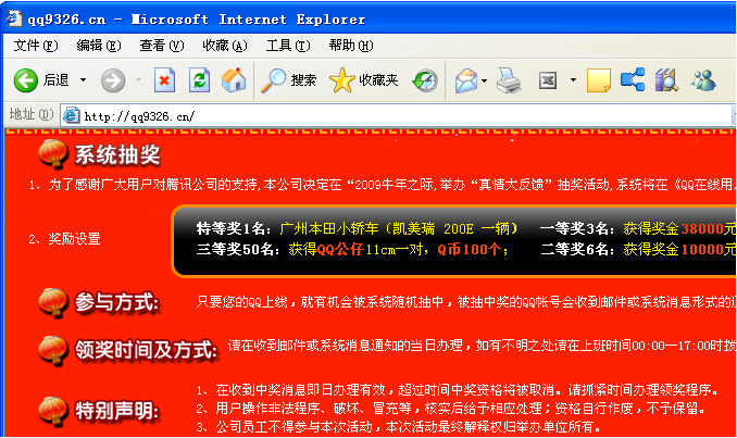 假冒系统消息病毒频繁活动 收到QQ中奖消息切莫相