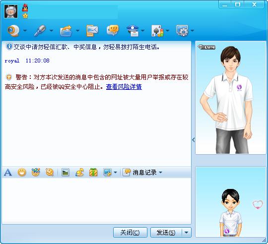 安全提示:您可以通过点击“查看风险详情”了解恶意网址的详细信息。如果您反复遭遇到这类情况,您可以对发送者的QQ帐号进行举报。 此外,用户可以自行访问QQ安全中心提供的网站安全验证系统 验证任何一个网站是否安全。